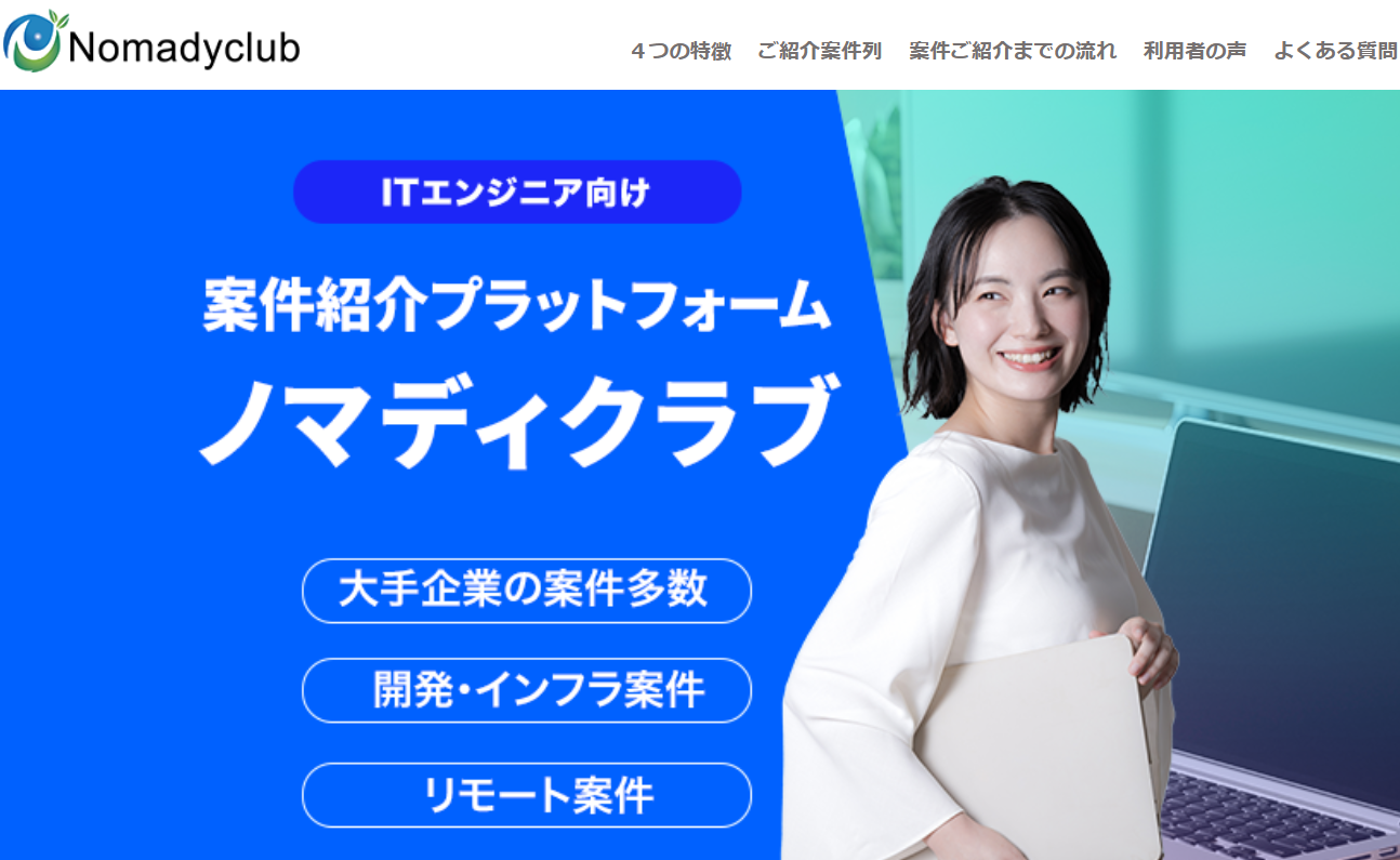 非公開・高単価案件を多数掲載【NOMADY CLUB(ノマディクラブ)】〜フリーランスITエンジニア必見の案件紹介サービス〜