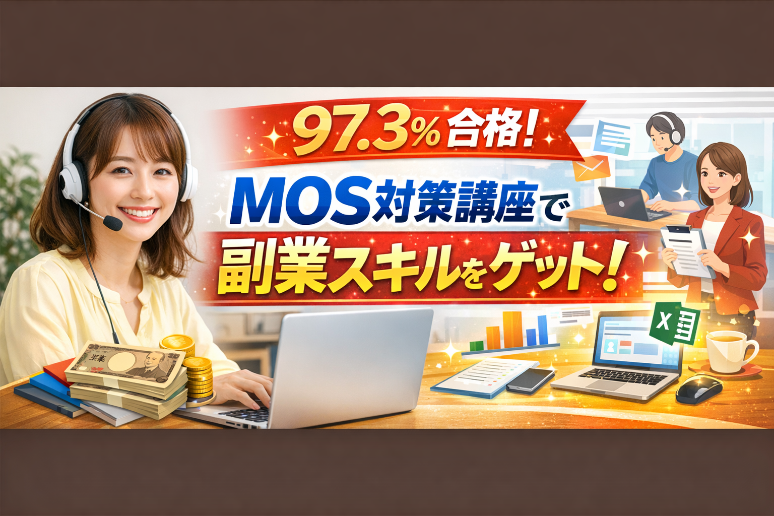 ハロー!パソコン教室のMOS試験対策講座は合格率97.3%。未経験からでもオンラインで学べて、副業や在宅ワークにも活かせる理由をわかりやすく解説します。